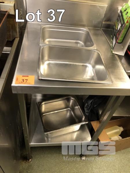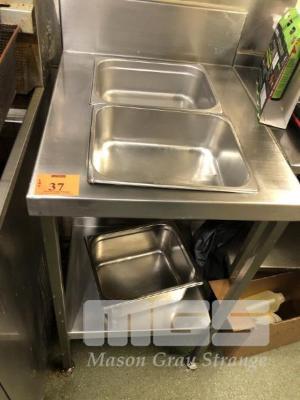 STAINLESS STEEL INFILL BENCH, 2 TIER, 500 x 600mm WITH GASTRONORM DROP IN TRAYS & SPLASHBACK