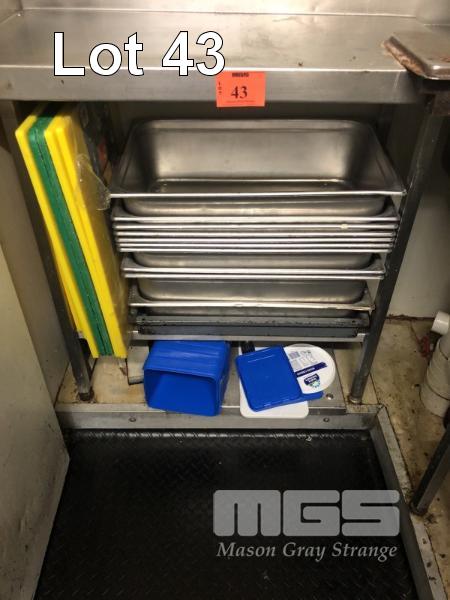 10 x LARGE STAINLESS STEEL COOK TRAYS, 540 x 340mm & 7 x PLASTIC CHOPPING BOARDS