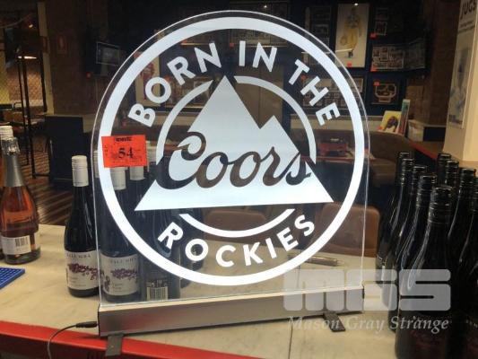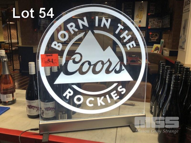 COORS ILLUMINATED SIGN, SEE THROUGH PERSPEX, 500 x 500mm WITH POWER SUPPLY