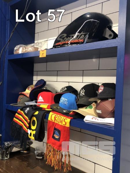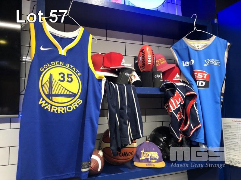 LARGE QUANTITY SPORTING COLLECTABLES INC CAPS, USA FOOTBALLS, SCARVES, BASEBALL HELMET, STUBBY HOLDERS, JERSEY, KEVIN DURANT & STRIKERS & MORE