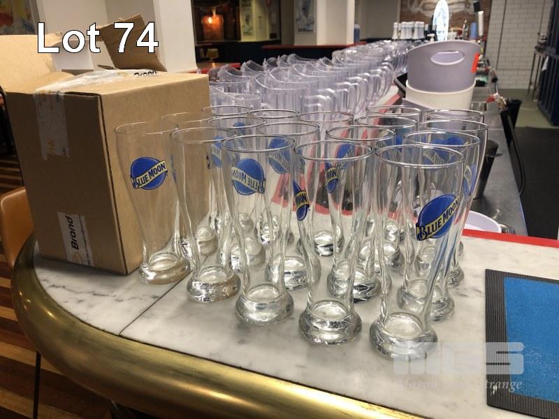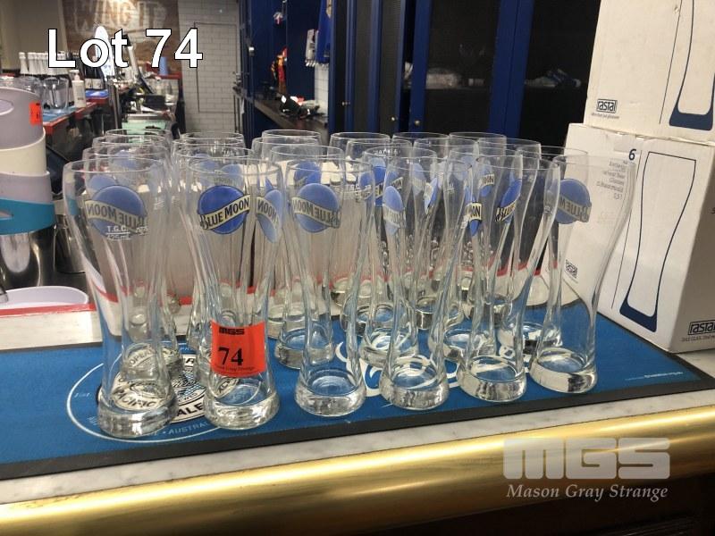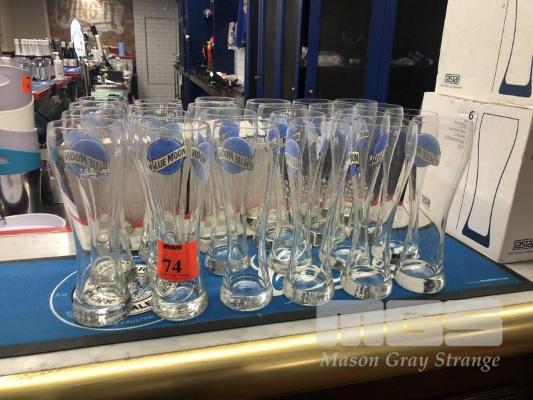 24 x BLUE MOON GLASSES, 570 & 425ml, 17 x PINT BLUE MOON GLASSES & 6 x NEW PINT BLUE MOON GLASSES