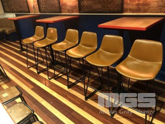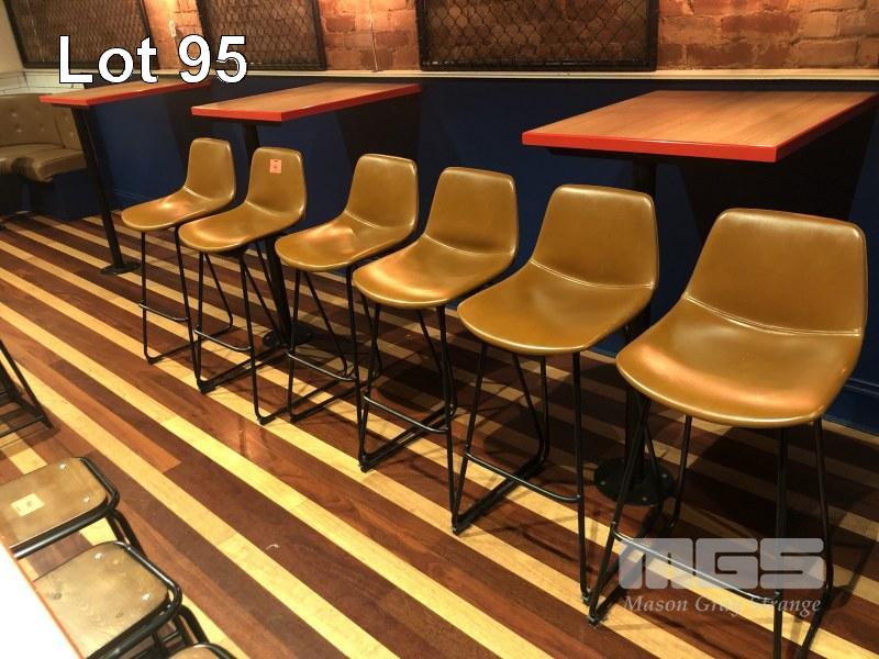 6 x BROWN VINYL BAR STOOLS WITH BACKREST, STEEL FRAME