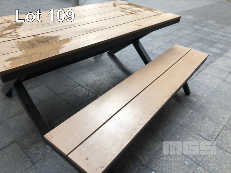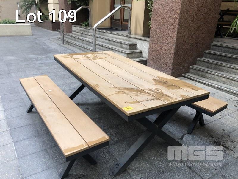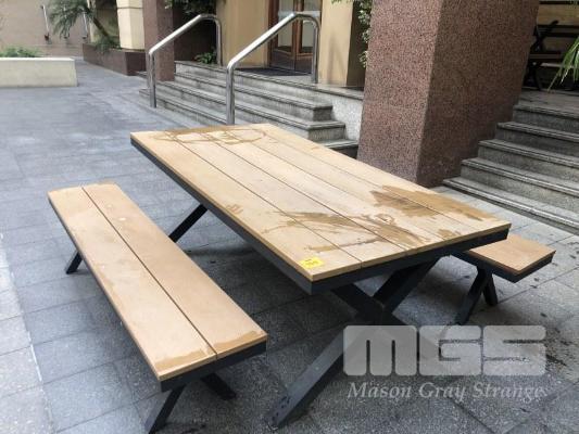 PICNIC BENCH, TIMBER TOP, STEEL FRAME, 2000 x 1000mm WITH 2 x STOOLS