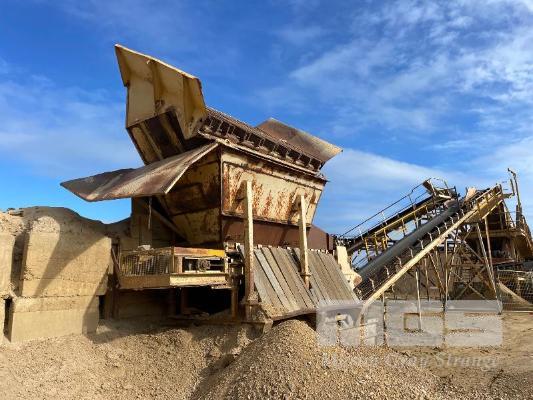 IN FEED HOPPER, 2700 X 1900 MM, PLATE STEEL BODY, BOX STEEL SUPPORT FRAME WITH BOTTOM FEED DISCHARGE CONVEYOR 4000MM X 900MM WIDE BELT 415 VOLT MOTOR.