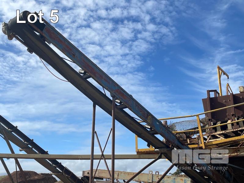 PRECISION SCREENS STOCK PILE DISCHARGE CONVEYOR, 10 METER X 500MM WIDE BELT, 415 VOLT MOTOR WITH SUPPORT FRAME