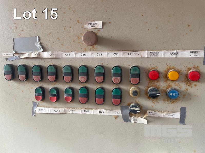 FIXED CRUSHING AND SCREEN PLANT ELECTRIC CONTROL STATION. SYSTEM START UP AND RUN CENTRE. TO INCLUDE ALL 415VOLT CABELING TO EACH UNIT AND TO FINISH AT JUNCTION BOXES, OR PLUG/ SWITH GEAR. NOTE: CABLE TRAYS STAY WITH MACHINERY.