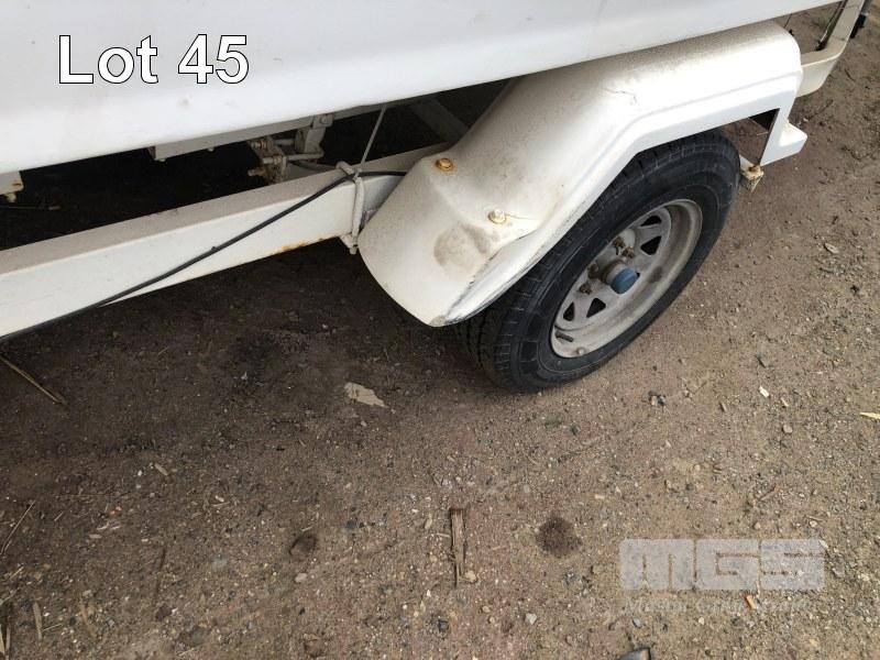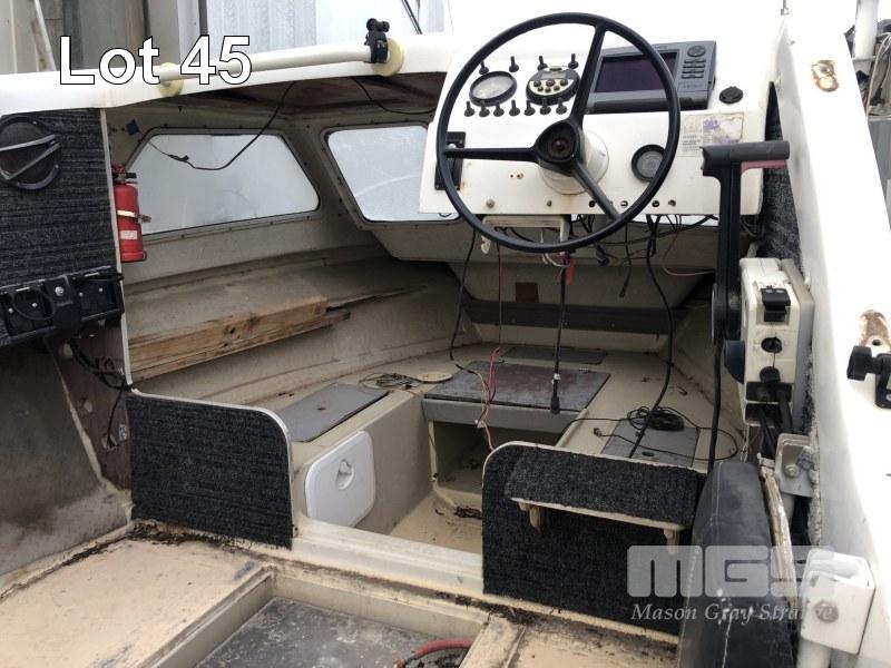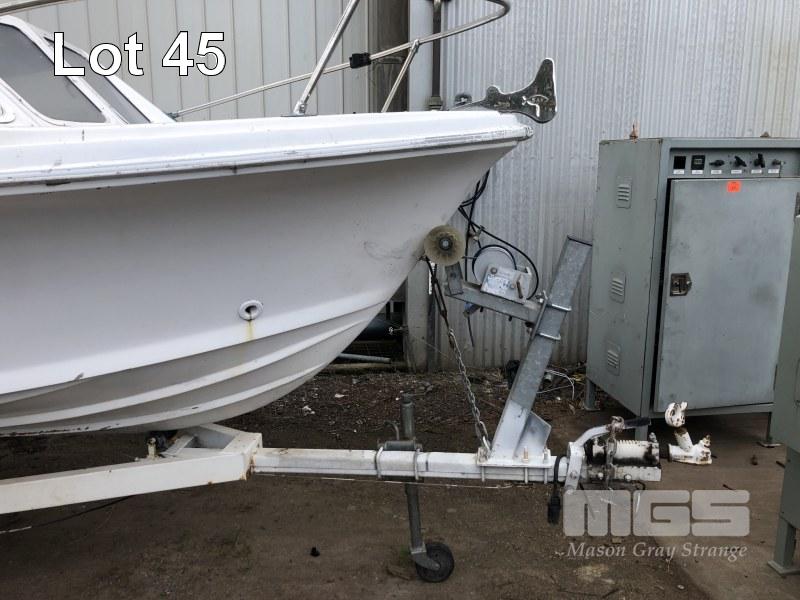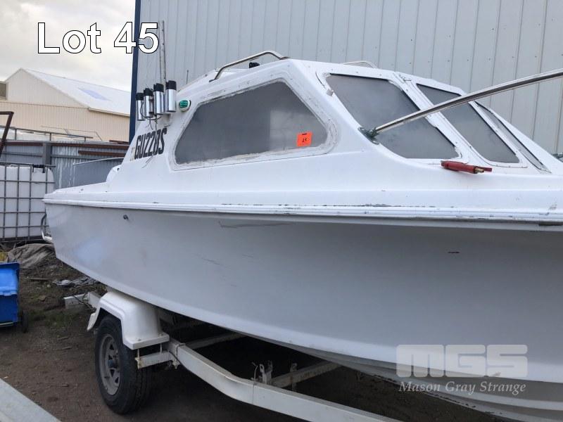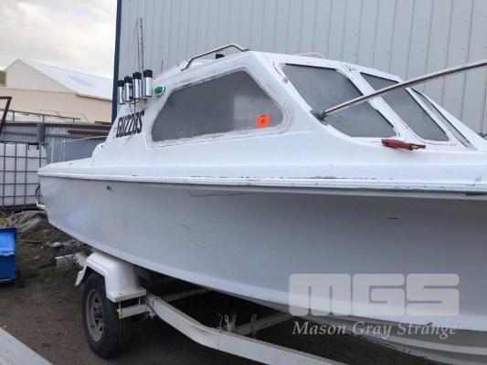 FIBREGLASS RUNABOUT, HALF CABIN, 5m, GU228S JOHNSON OUTBOARD ENGINE, WVO V4, 140 HP MOD: AJ140TICOS S/NO: 604395 LOWRANCE HDS7 FISH FINDER ON SINGLE AXLE TRAILER WITH BRAKES & WINCH WITH PAPERS FOR BOAT & TRAILER