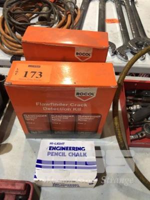 2 x PACKETS ROCOL FLAWFINDER SPRAY & 1 x BOX ENGINEERS CHALK
