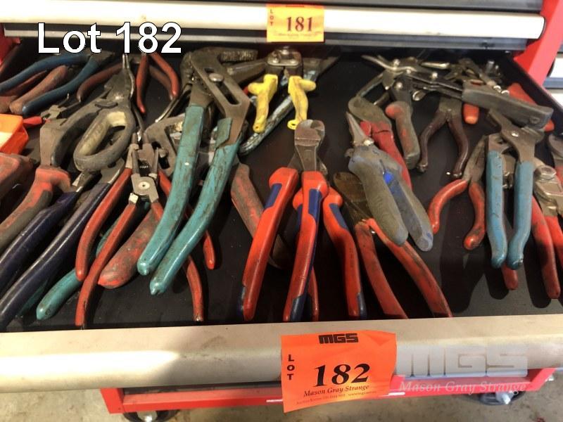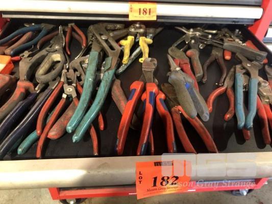 LARGE QUANTITY PLIERS, CUTTERS, TIN SNIPS, GRIPS, CIRCLIP PLIERS, SCISSORS, APPROX 35 x PIECES
