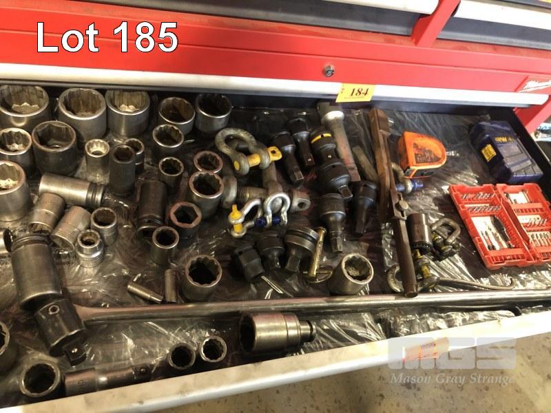 3/4 DRIVE SOCKETS, STANDARD & IMPACT, LONG 3/4 BREAKER BAR, SHACKLES, 3/4-1/2", 3/4-1" ADAPTORS, TORQUE WRENCH, TAPE MEASURE, DRIVE BITS CONTENTS 1 x DRAWER