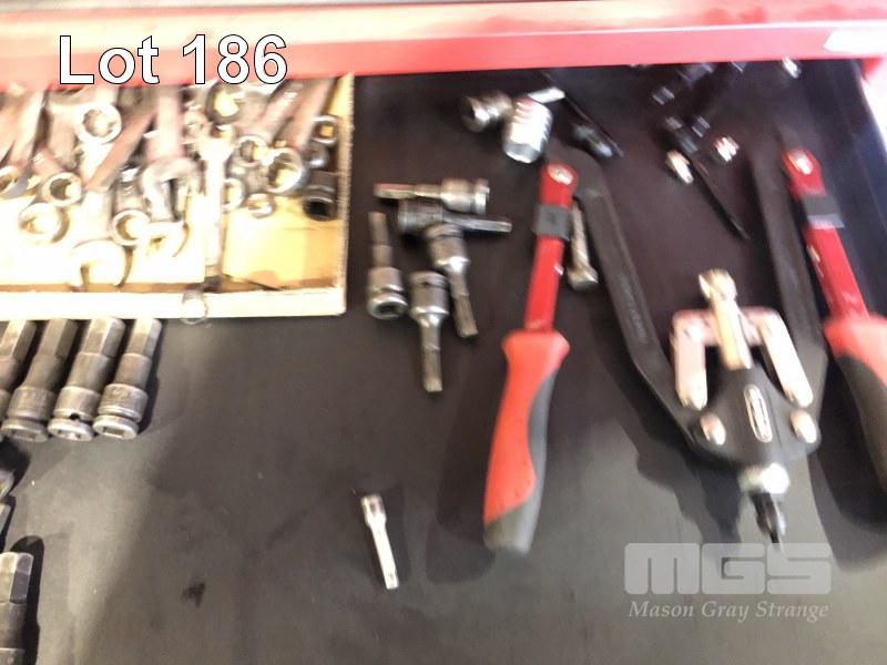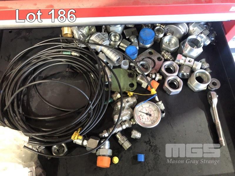 SPECIALTY SOCKET DRIVER, SPANNERS, SERT TOOL, GAUGES, HOSE FITTINGS, MALLETS, HAMMERS & ASSORTED THREAD LOCK CONTENTS 4 x DRAWERS