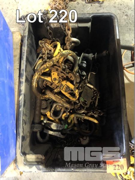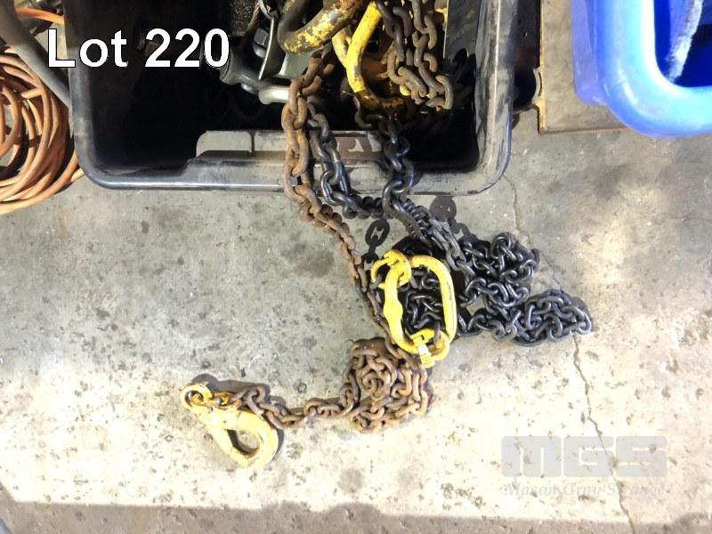 1 x TUB LIFTING CHAINS & SHACKLES, 3 x SETS 2 WAY CHAINS, 2.5 & 5.5 TONNE & ASSORTED ATTACHMENTS