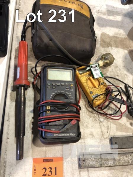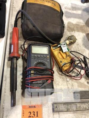FLUKE TONG TESTER & MULTIMETER IN CARRY BAG, SOLDERING IRON & OT MULTIMETER & DIGITECH MULTIMETER