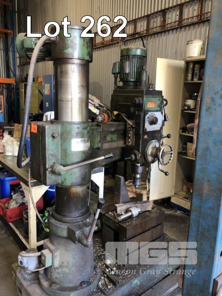 RADIAL ARM DRILL, HERLESS MOD: FM-700 No 4 M/T 700mm APPROX 415V WITH DRILL BLOCK POWERED RISE & FALL ARM DRILL CHUCK & LIVE CENTRE