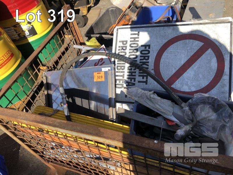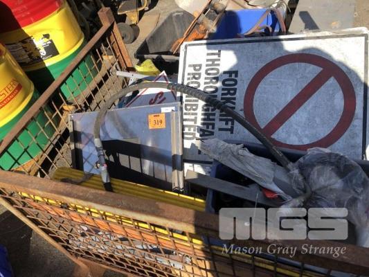 STILLAGE & CONTENTS, BIT OF EVERYTHING, HAND WINCH, HARDWARE, SIGNS