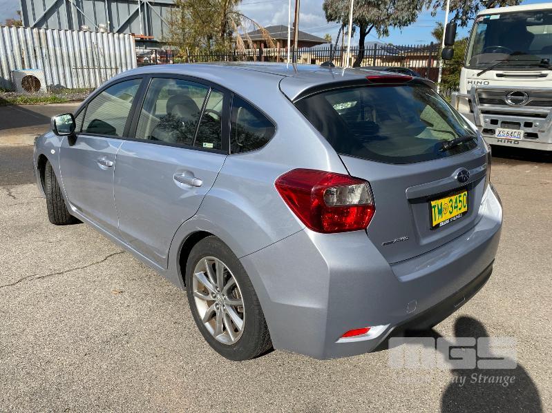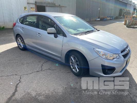 2014 SUBARU IMPREZA G-4 HATCH ALL WHEEL DRIVE REG: TM 34 50 (SA) VIN: JF1GP7KA3EF056964 ENG: FB201427876 ODO: 15,341kms SHOWING 2.0 LITRE, 6 SPEED MANUAL TRANSMISSION, PETROL, SILVER DUCO, 4 DOORS, 5 SEAT, ALL WHEEL DRIVE ABS, AIR BAG, AIR CON, ALLOY WHEELS, BLUETOOTH, CD PLAYER, CRUISE CONTROL, IMMOBILISER, POWER STEERING, POWER WINDOWS, SPARE WHEEL, KEY #23 (WITH PAPERS, WITH 1 KEY/S, WITH OWNER'S MANUAL, WITH SERVICE BOOKS) CONDITION: DUCO - MINOR SCRATCHES & SCRAPES