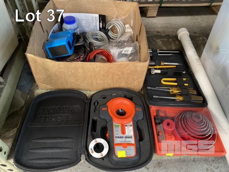 B&D BULLSEYE LASER LEVEL, HOLE SAW SET, AUTOMOTIVE CLEANERS & CHEMICALS, GLOVES, TOOLS, PAINTS, SEALANTS, ETC