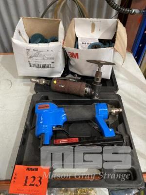 PNEUMATIC SCORPION STAPLE GUN IN CASE & SCOTCH BRITE ABRASIVE DISCS