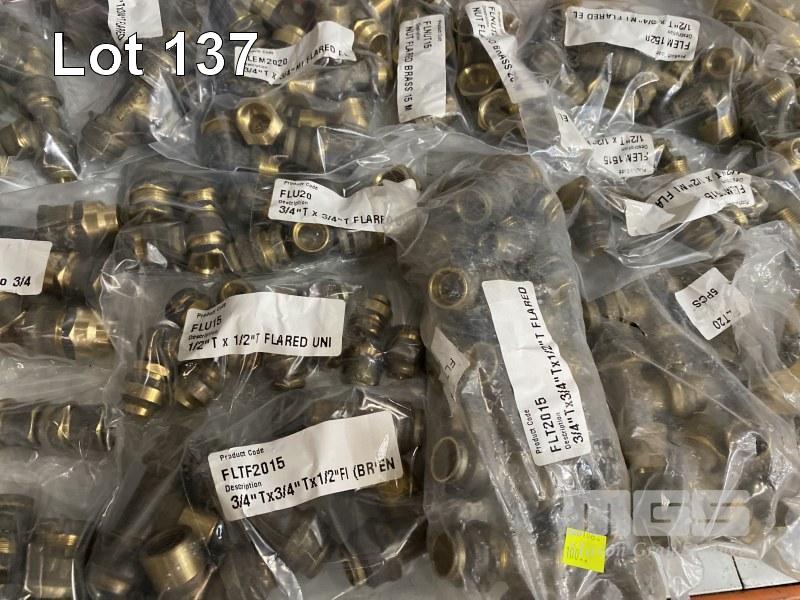 ASSORTED BRASS FITTINGS INC FLARED UNIONS, 1" TO 1/2",