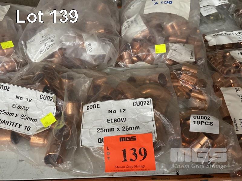 COPPER PIPE FITTINGS, SIZES, 25, 20 & 15mm INCLUDING