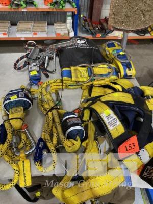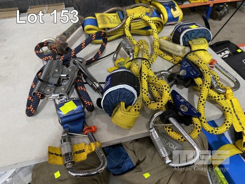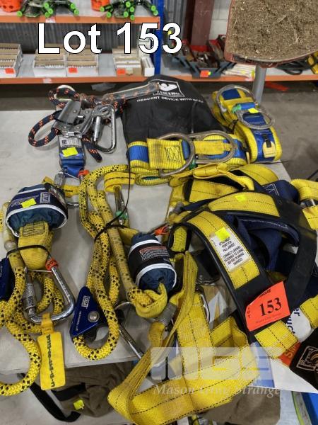 3 x FALL ARRESTS ASSEMBLIES FITTED WITH CARABINERS, ROPE LOCK/SELF CLIMBERS,