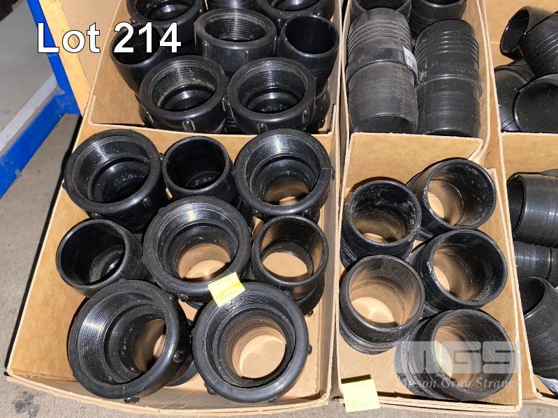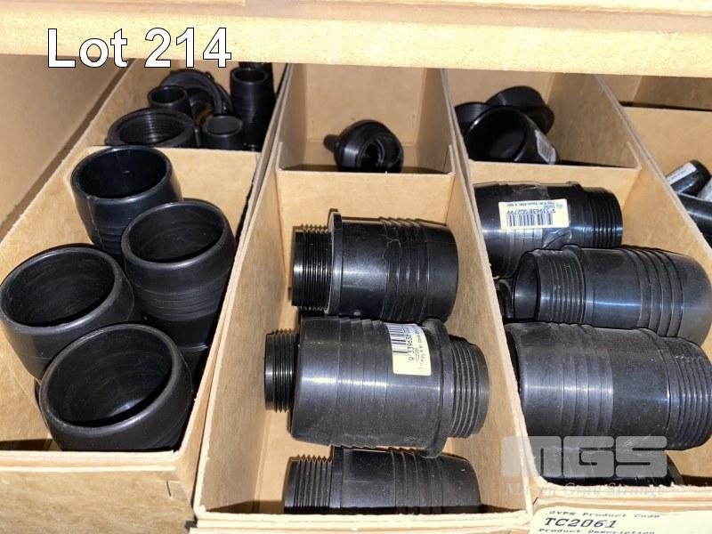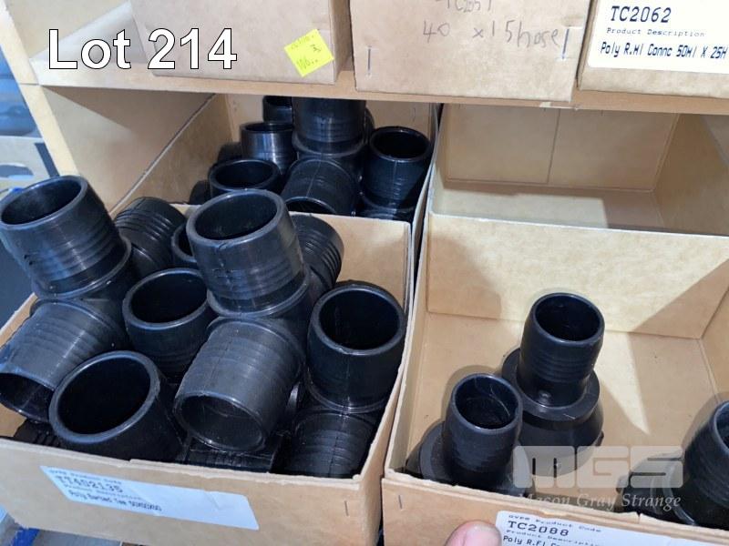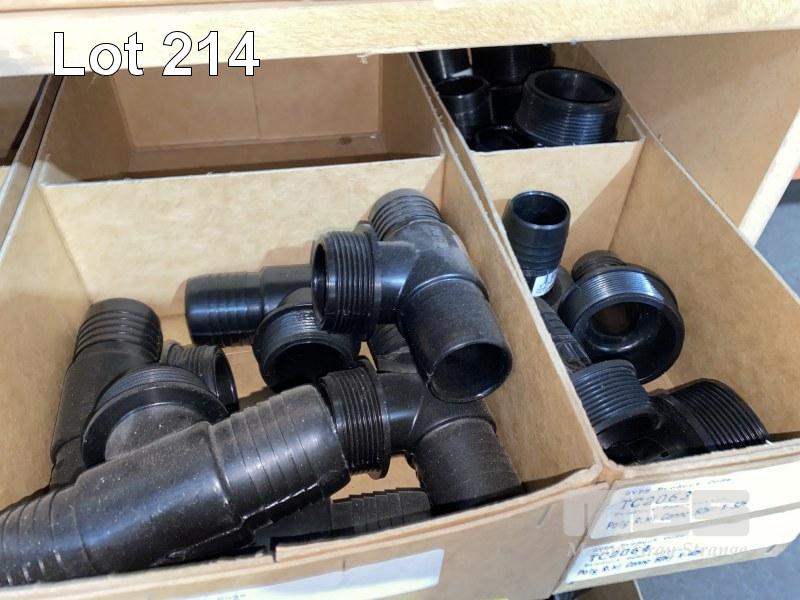 DIESEL/CHEMICAL RESISTANT PIPE FITTINGS, VULTREX, POLYPROPYLENE HOSE FITTINGS INCLUDING THREADED/BARBED JOINERS & CONNECTORS, ELBOWS, TEES, ETC SIZES INC: 25, 32, 40 & 50mm IN 13 x CARDBOARD DRAWERS 3 x BOTTOM SHELVES INCLUDING SHELF UNIT