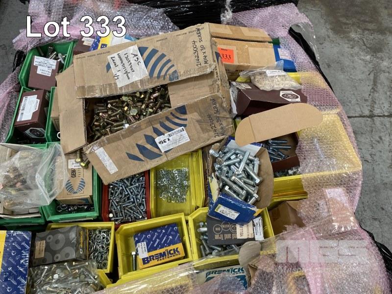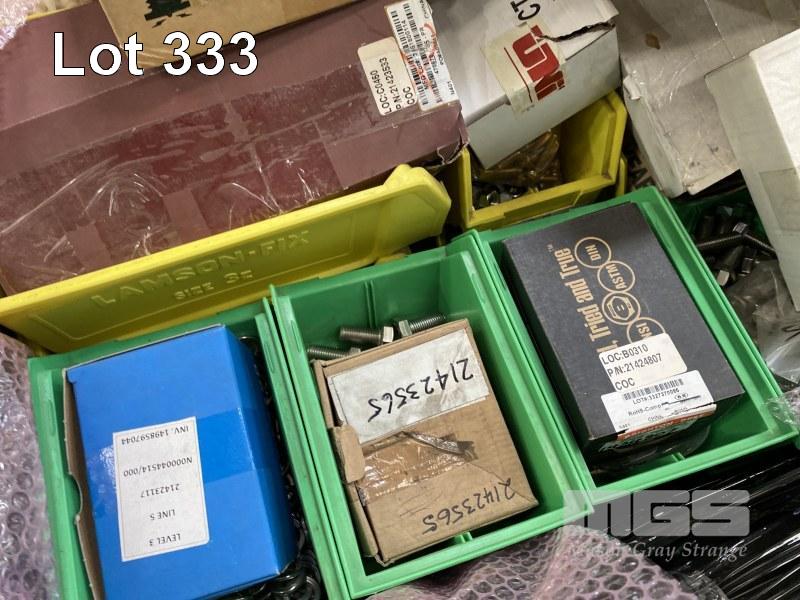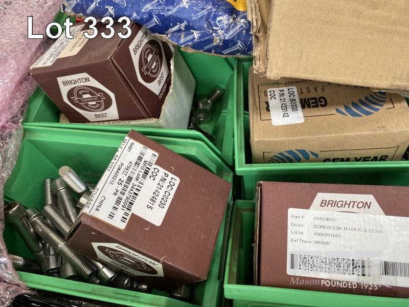 ASSORTED FASTENERS IN LAMSON PARTS DRAWERS INC NUTS, BOLTS, HEX BOLTS & WASHERS, ETC