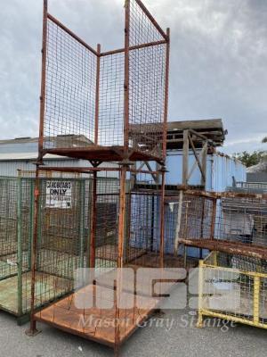 4 x STEEL MESH STILLAGES, ORANGE, 1050 x 1050 x 1500mm (H)