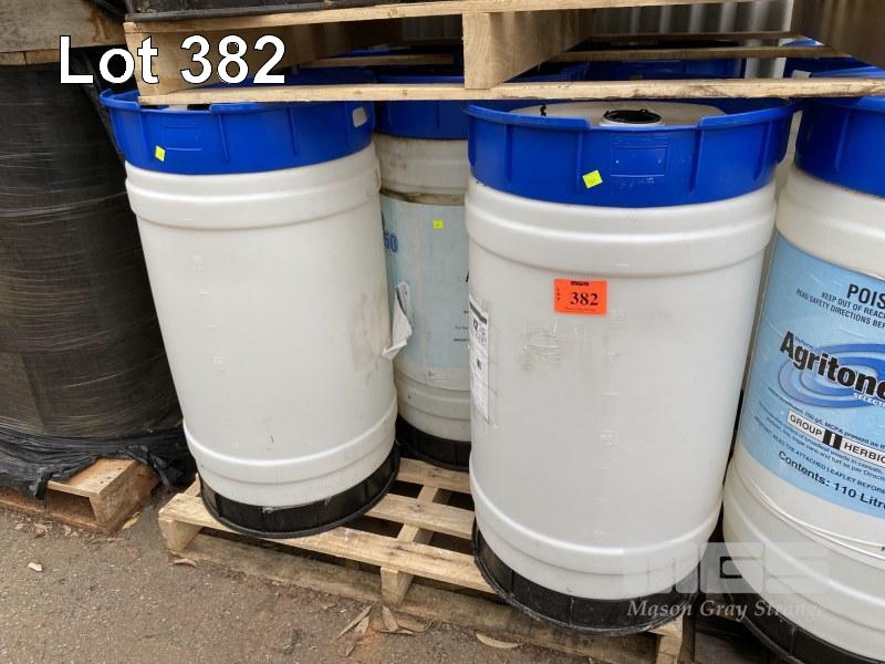 5 x 110 LITRE POLY DRUMS, BLUE TOP, (CONTAINED HERBICIDE)