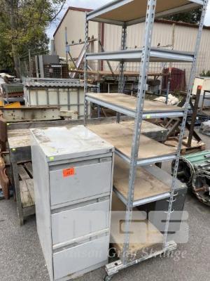 3 DRAWER STEEL FILING CABINET, MODULAR SHELF UNIT, 180cm, MOBILE DRAWER UNIT & TIMBER WORK BENCH, 1800 x 600 x 850mm (H)