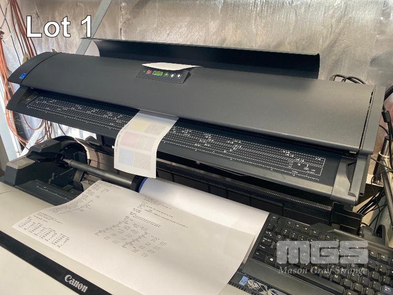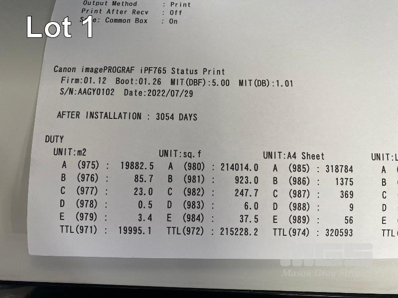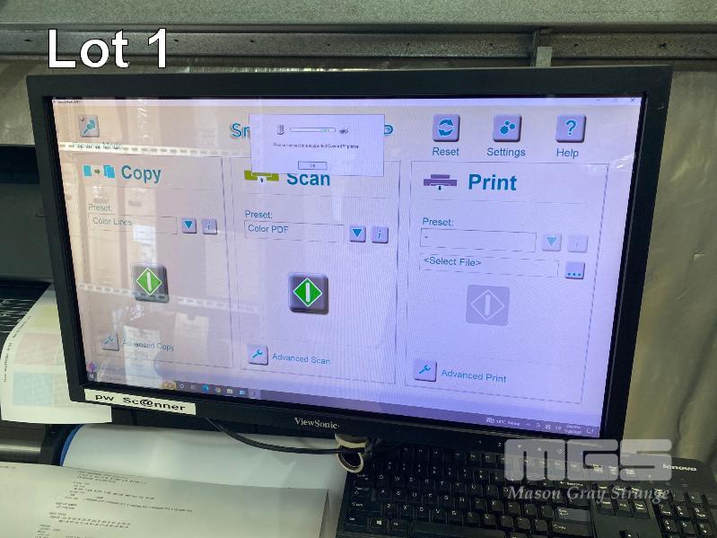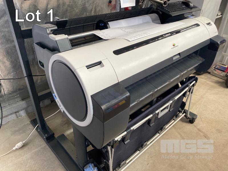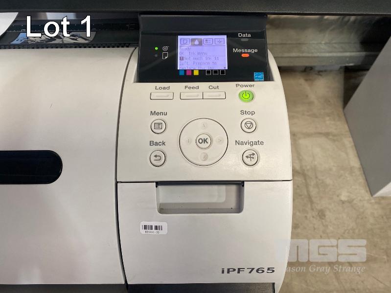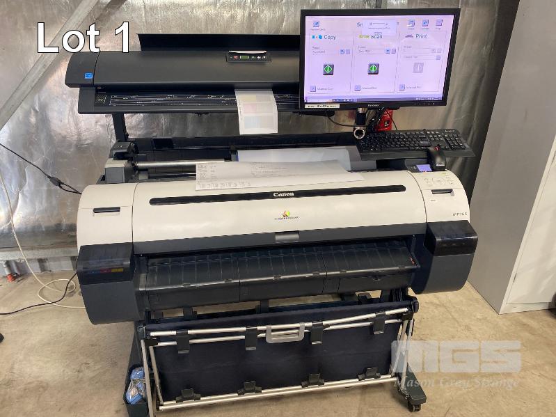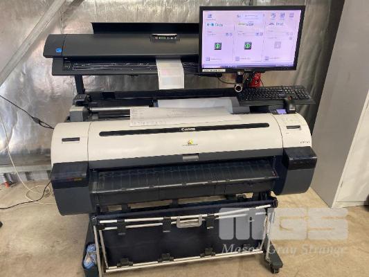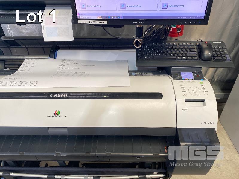 LARGE FORMAT PRINTER, CANON imagePROGRAF iPF765, 36", TOTAL PRINT AREA 20,219m2 (TEST PAGE ATTACHED) (MESSAGE "PREPARE TO REPLACE THE INK") WITH COLORTRAC M40 LARGE FORMAT SCANNER, DESKTOP PC, LENOVO THINKCENTRE M72e, CORE i5 3470 @ 3.2GHz, 4GB RAM, KEYBOARD & MOUSE WITH VIEWSONIC TD2220 22" TOUCHSCREEN MONITOR S/N:AAGY0102
