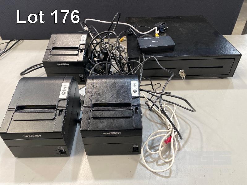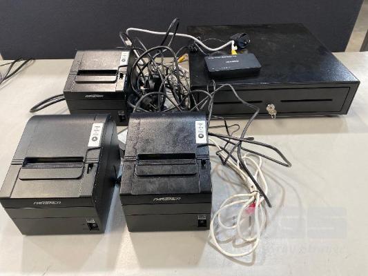 POS CASH DRAWER WITH KEY & 3 x PARTNER RP-630 RECEIPT PRINTERS