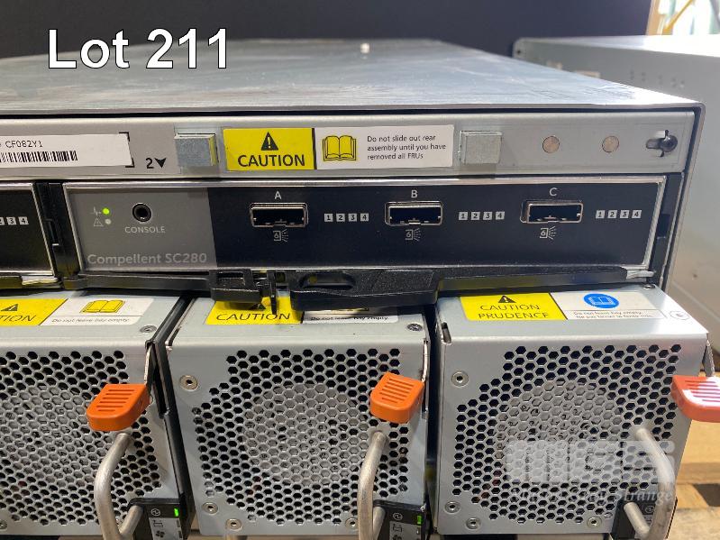 RACKMOUNT STORAGE ARRAY, DELL COMPELLENT SC280 HIGH DENSITY DENSE ENCLOSURE, 5U, 84 x 4TB SAS HDD, 2 x SAS CONTROLLERS, 2 x PSU (NO 15A CABLES) (MISSING SIDE BEZELS) S/N:CF082Y1