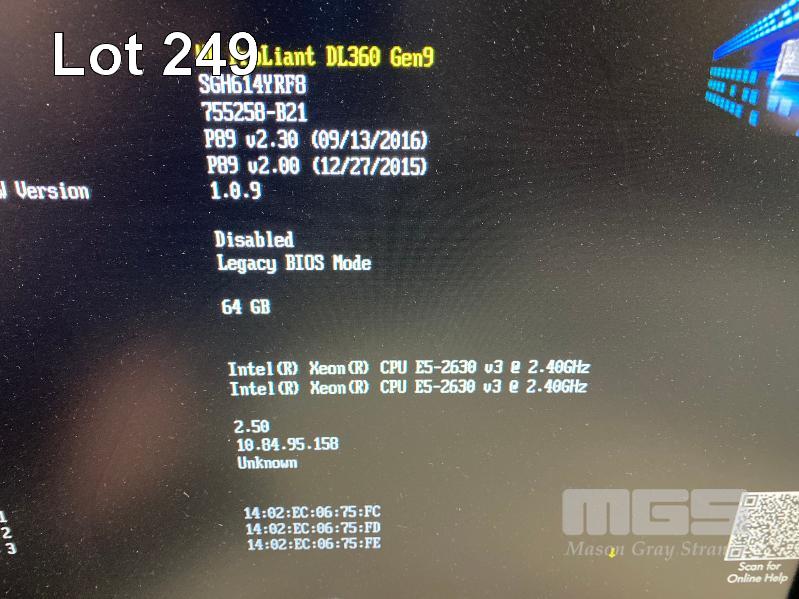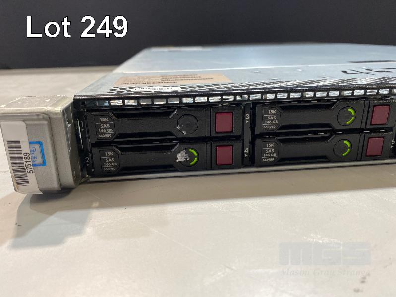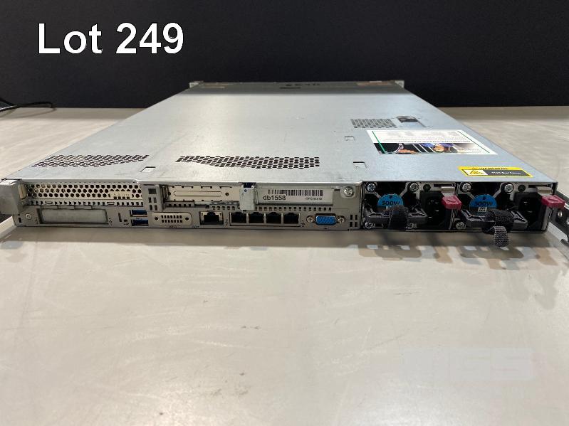 RACKMOUNT SERVER, HP PROLIANT DL360 Gen9, 1U, 2 x XEON E5-2630 v3 @ 2.4GHz, 64GB ECC DDR4 RAM, 10 x 146GB SAS HDD, 2 x 500W PSU (NO CABLES) (NOTE: MESSAGE "HPE SMART STORAGE BATTERY 1 FAILURE") S/N:SGH614YRF8