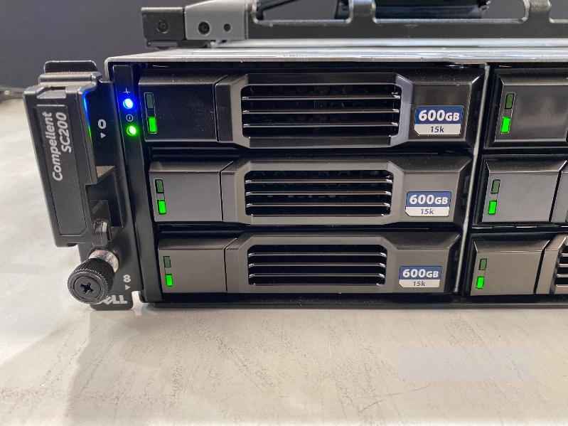 RACKMOUNT STORAGE ARRAY, DELL COMPELLENT SC200, 2U, 12 x 600GB SAS (12Gbps) (2.5") HDD, 2 x SAS CONTROLLERS (00TW47), 2 x 700W PSU (NO CABLES) S/N:GHPQ102