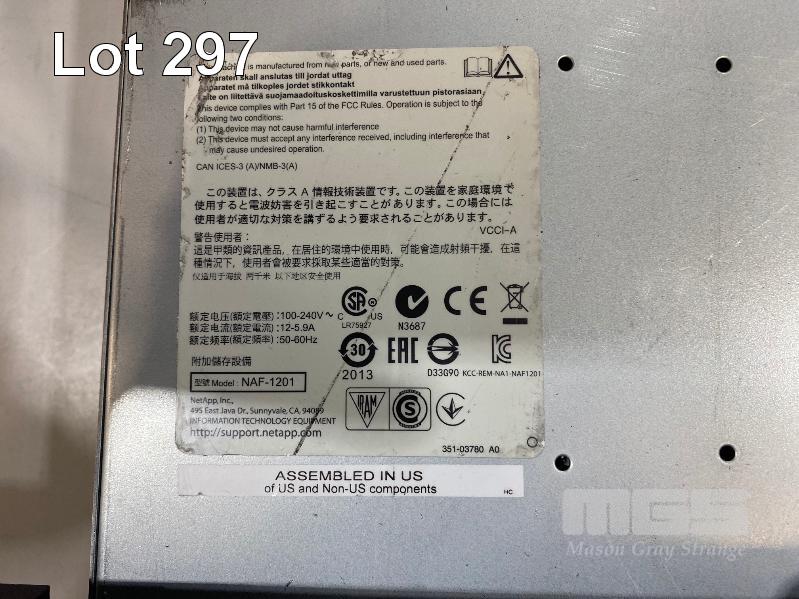 RACKMOUNT STORAGE ARRAY, NETAPP MODEL NAF-1201, 2U, 4 x 200GB SSD, 8 x 2TB SATA HDD, 2 x SAS STORAGE CONTROLLERS, 2 x PSU (NO CABLES)