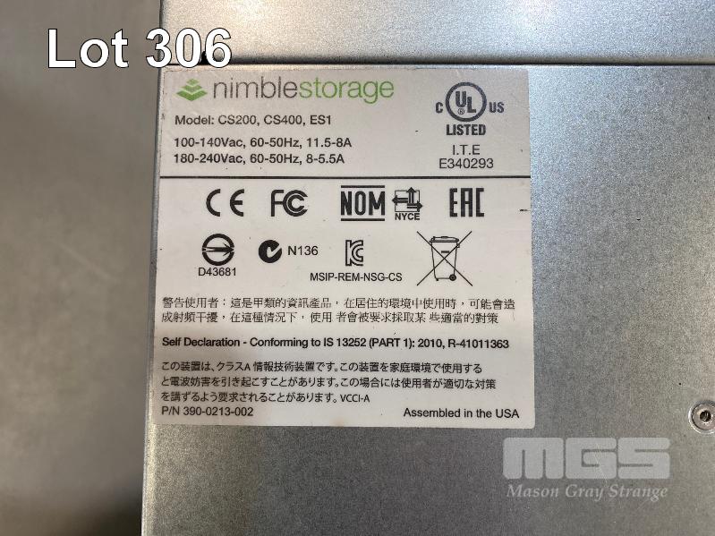 RACKMOUNT STORAGE ARRAY, NIMBLE STORAGE MODEL CS200, CS400, ES1, 3U, 15 x 3TB SAS HDD, 1 x 960GB SSD, 2 x SAS CONTROLLERS, 2 x PSU (NO CABLES)