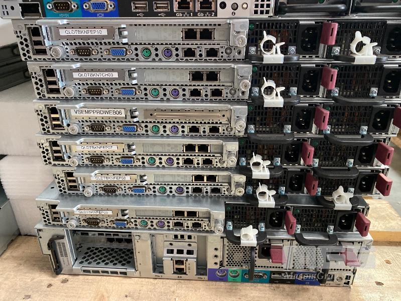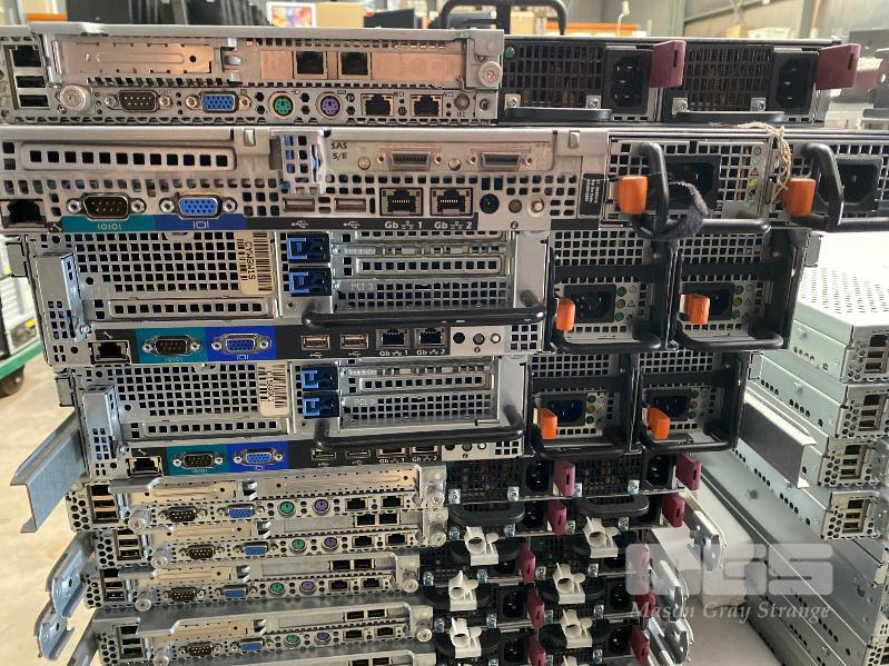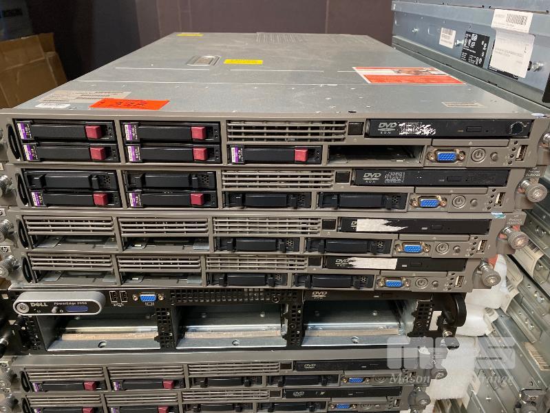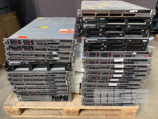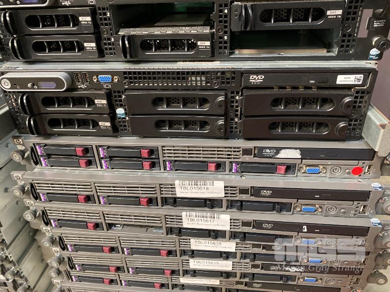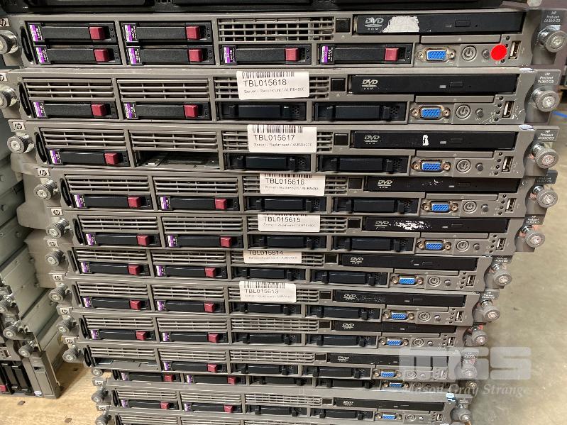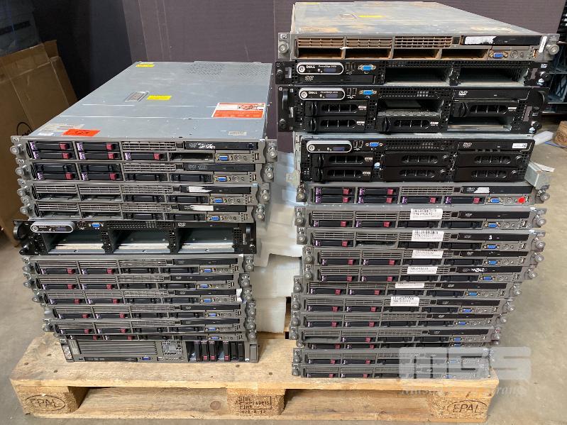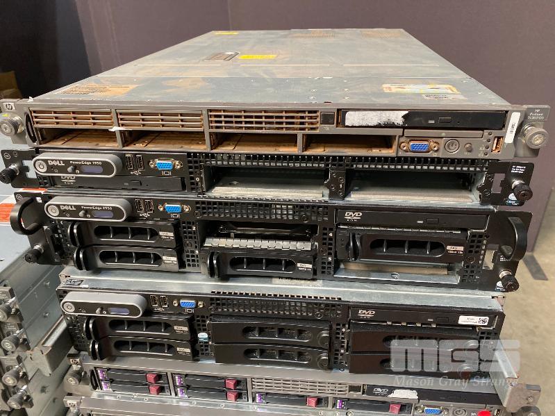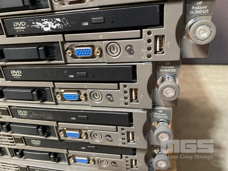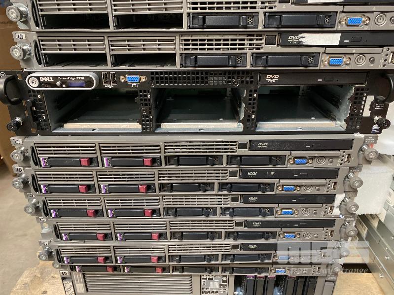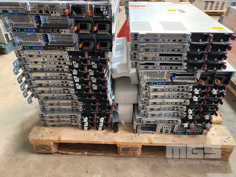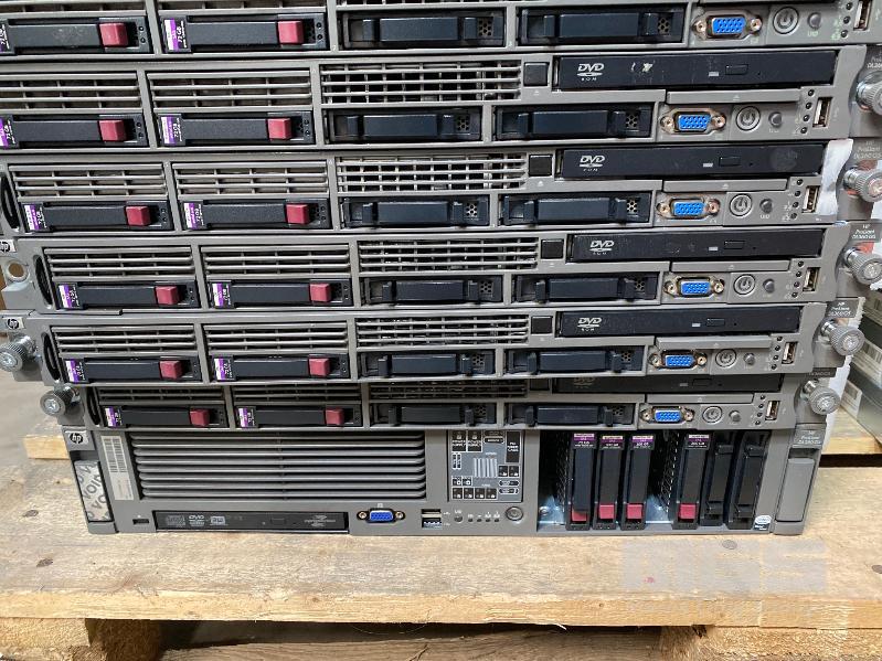 PALLET LOT ASST SERVERS, MOSTLY HP PROLIANT DL360 G5, 2 x XEON, 4-8GB RAM, VARIOUS HDD CONFIGS (NO CABLES)