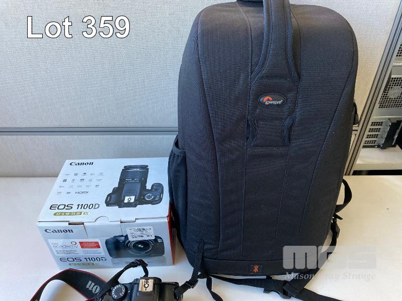 CANON EOS 1100D DSLR CAMERA, WITH EF-S 18-55mm LENS, SD CARDS, CHARGER & LOWEPRO FLIPSIDE 300 BACKPACK