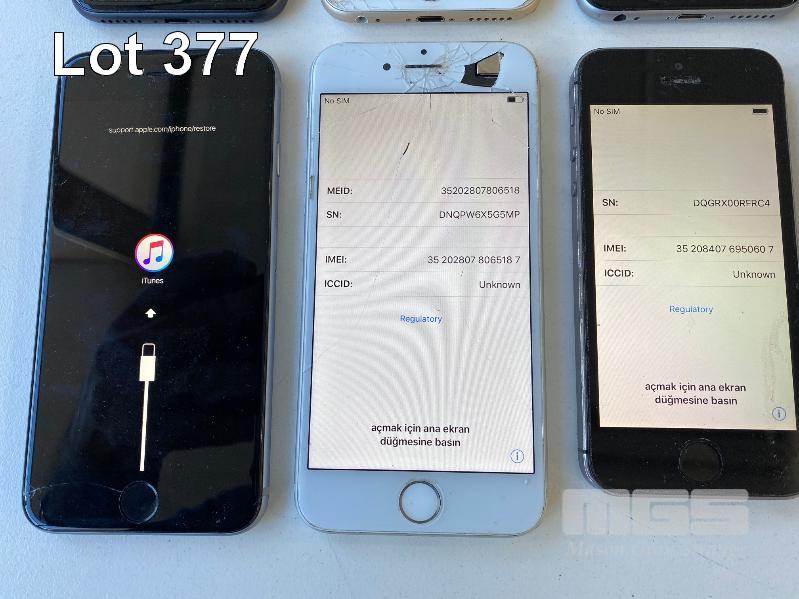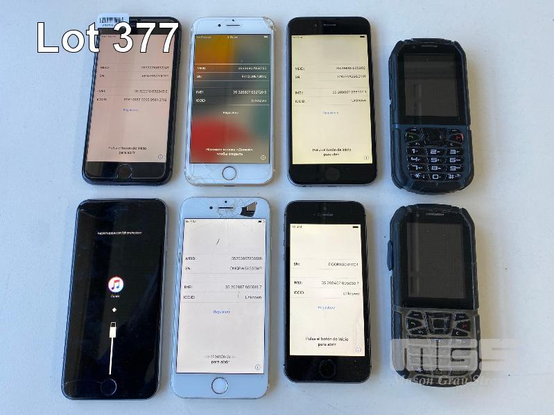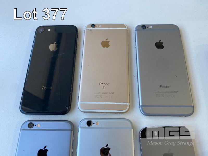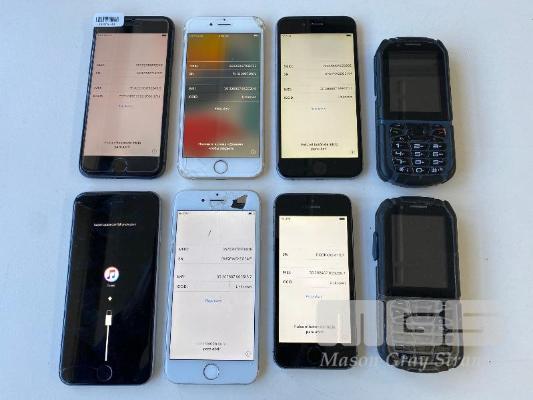 1 x APPLE iPHONE 8, 1 x APPLE iPHONE 6S, 3 x APPLE iPHONE 6, 1 x APPLE iPHONE 5s, 1 x APPLE iPHONE 6 (STUCK ON RESTORE SCREEN) (NO CABLE, NO CHARGER) (NOTE: ALL iCLOUD LOCKED, SOME WITH DAMAGE) & 2 x TELSTRA TOUGH T55 PHONES S/N:FFNZP0WYJC6C, FK1QD9E7GRYJ, DNVPVA29G5MN, DNQPW6X5G5MP, DQGRX00RFRC4, N/A