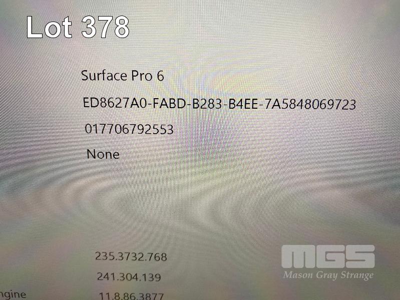 TABLET PC, MICROSOFT SURFACE PRO 6, MODEL 1796, CORE i5 8250U (8TH GEN) @ 1.6GHz, 8GB RAM, 128GB SSD, 12.3" TOUCHSCREEN, Wi-Fi, WINDOWS 10 HOME INSTALLED (NO POWER SUPPLY) S/N:017706792553