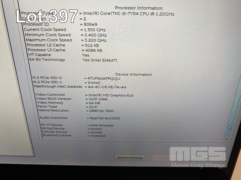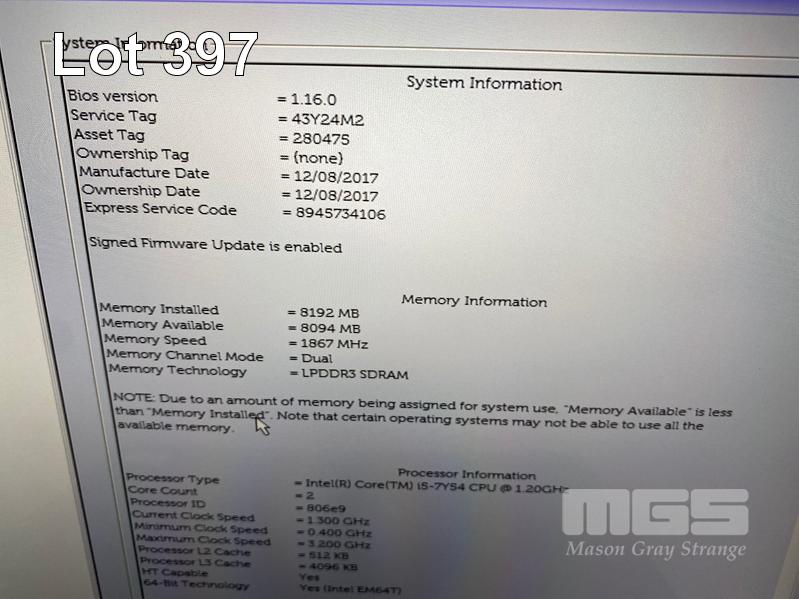 TABLET PC, DELL LATITUDE 7285, CORE i5 7Y54 (7TH GEN) @ 1.2GHz, 8GB DDR3 RAM, 256GB NVMe M.2 SSD, 12.3" TOUCHSCREEN (1920x1080), INTEL HD GRAPHICS 615, Wi-Fi, BLUETOOTH, WINDOWS 10 HOME INSTALLED, KEYBOARD & USB-C POWER SUPPLY (NOTE: MARKS ON KEYBOARD) S/N:43Y24M2