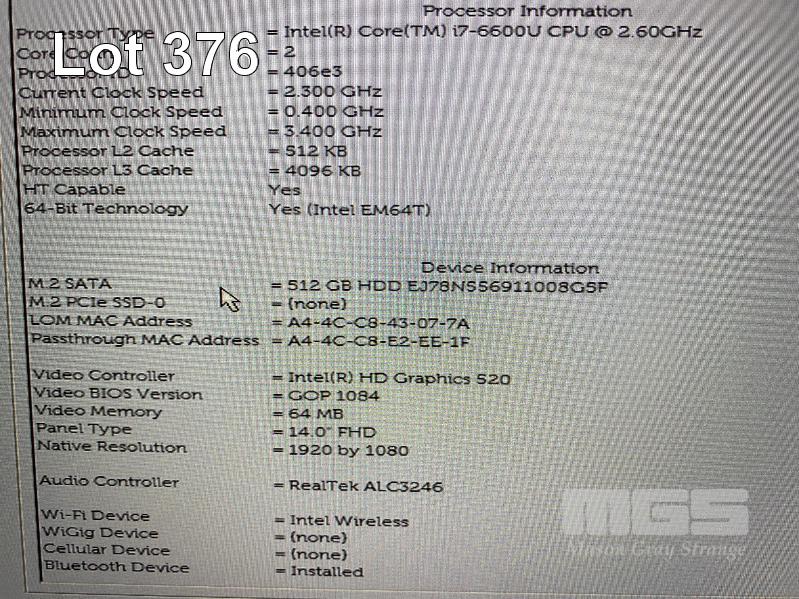 LAPTOP, DELL LATITUDE 7480, CORE i7 6600U (6TH GEN) @ 2.6GHz, 16GB DDR4 RAM, 512GB M.2 SSD, 14" WIDESCREEN (1920x1080), INTEL HD GRAPHICS 520, Wi-Fi, BLUETOOTH, WINDOWS 10 HOME INSTALLED & POWER SUPPLY S/N:FNKVGH2