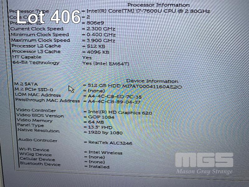 LAPTOP, DELL LATITUDE 7380, CORE i7 7600U (7TH GEN) @ 2.8GHz, 16GB DDR4 RAM, 512GB M.2 SSD, 13.3" WIDESCREEN (1920x1080), INTEL HD GRAPHICS 620, Wi-Fi, BLUETOOTH, WINDOWS 10 HOME INSTALLED & POWER SUPPLY S/N:B66W2M2