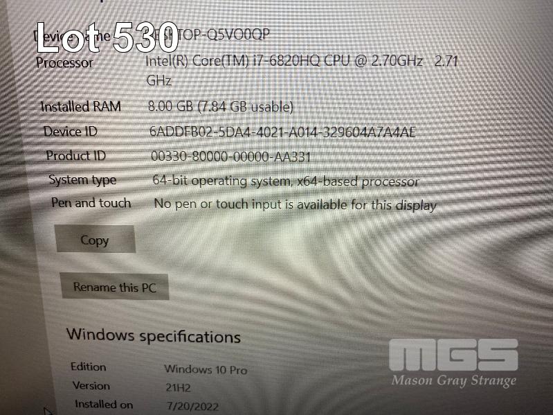 LAPTOP, LENOVO THINKPAD P50 MOBILE WORKSTATION, TYPE 20EQ, CORE i7 6820HQ (6TH GEN) @ 2.7GHz, 8GB DDR4 RAM, 512GB SSD, 15.6" WIDESCREEN (1920x1080), 4GB NVIDIA QUADRO M2000M VIDEO, Wi-Fi, BLUETOOTH, WINDOWS 10 PRO INSTALLED & POWER SUPPLY S/N:PC0EA7EE