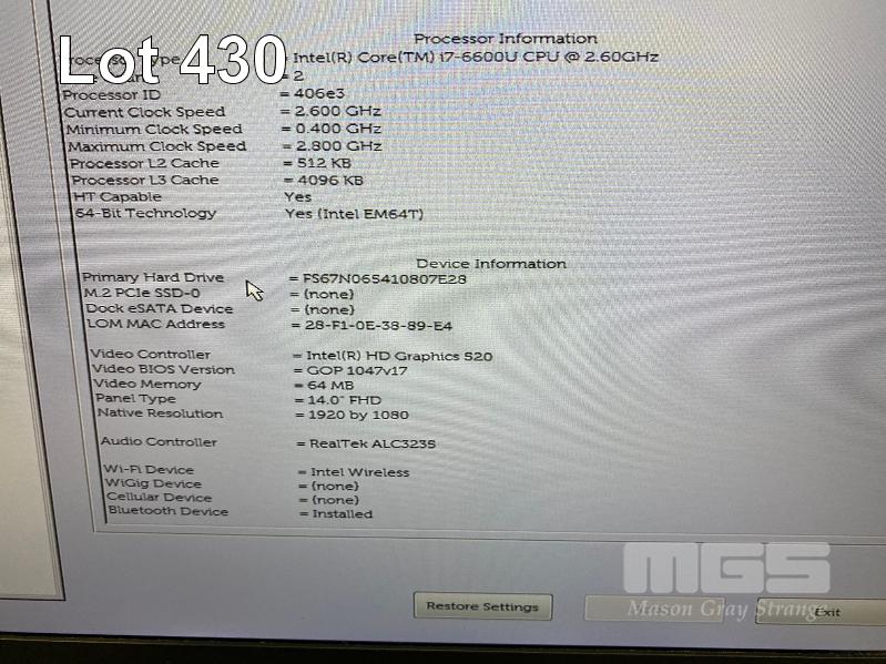LAPTOP, DELL LATITUDE E7470, CORE i7 6600U (6TH GEN) @ 2.6GHz, 16GB DDR4 RAM, 512GB M.2 SSD, 14" WIDESCREEN (1920x1080), INTEL HD GRAPHICS 520, Wi-Fi, BLUETOOTH, WINDOWS 10 HOME INSTALLED, DOCKING STATION & POWER SUPPLY S/N:7SRGMC2