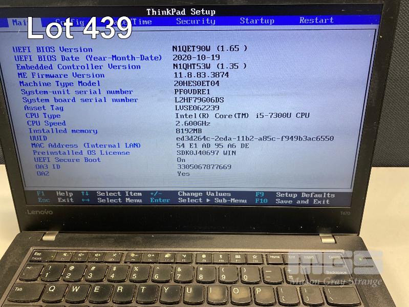 LAPTOP, LENOVO THINKPAD T470, TYPE 20HE, CORE i5 7300U (7TH GEN) @ 2.6GHz, 8GB DDR4 RAM, 256GB NVMe M.2 SSD, 14" WIDESCREEN (1366x768), INTEL HD VIDEO, Wi-Fi, BLUETOOTH, WINDOWS 10 PRO INSTALLED & POWER SUPPLY (NOTE: MARKS ON SCREEN, NO BATTERY, KEYBOARD ISSUES - SOME KEYS NOT WORKING, WHITE SPOT SCREEN BLEMISH) S/N:PF0VDRE1