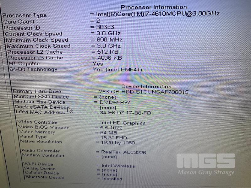 LAPTOP, DELL LATITUDE E6540, CORE i7 4610M (4TH GEN) @ 3GHz, 16GB DDR3 RAM, 256GB SSD, DVD-RW, 15.6" WIDESCREEN (1920x1080), INTEL HD VIDEO, Wi-Fi, BLUETOOTH, WINDOWS 10 PRO INSTALLED & POWER SUPPLY S/N:F1MVP12
