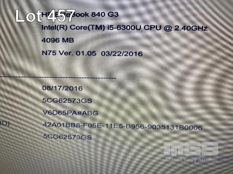 LAPTOP, HP ELITEBOOK 840 G3, CORE i5 6300U (6TH GEN) @ 2.4GHz, 4GB DDR4 RAM, 128GB SSD, 14" WIDESCREEN (1920x1080), INTEL HD VIDEO, Wi-Fi, BLUETOOTH, WINDOWS 10 PRO INSTALLED WITH DOCKING STATION & POWER SUPPLY (NOTE: NO LAPTOP POWER SUPPLY) S/N:5CG62573GS