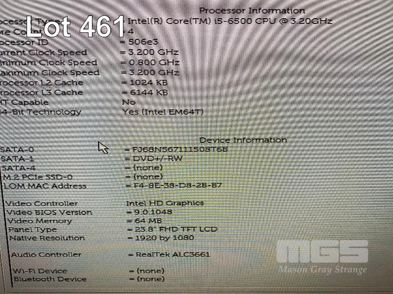 ALL-IN-ONE PC, DELL OPTIPLEX 7440, CORE i5 6500 (6TH GEN) @ 3.2GHz, 8GB DDR4 RAM, 256GB SSD, DVD-RW, INBUILT 23.8" FHD WIDESCREEN (1920x1080), INTEL HD VIDEO, WEBCAM, 8 x USB, WINDOWS 10 HOME INSTALLED, KEYBOARD & MOUSE S/N:5LM2TF2